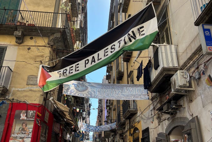 In Naples, Palestinian symbols are everywhere, permeating the city’s fabric as if Palestine is the paramount political concern for the entire region’s populace.